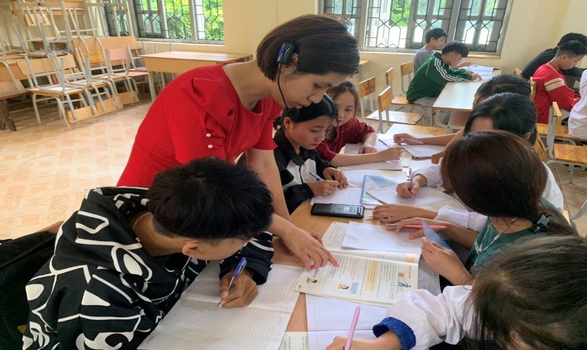 Cô giáo Vũ Thị Nhàn hướng dẫn học viên trong giờ học