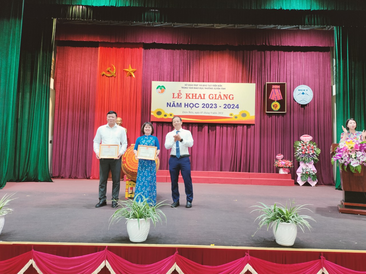 Tại Lễ giảng, được sự ủy quyền của Giám đốc Sở GD&ĐT, Trung tâm đã công bố các Quyết định công nhận danh hiệu thi đua, khen thưởng và trao tặng chứng nhận, giấy khen cho các cá nhân đạt thành tích xuất sắc trong năm học vừa qua.