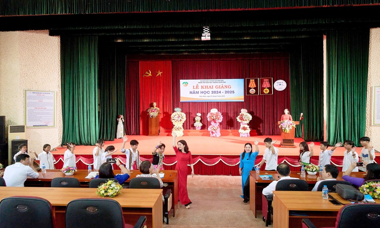 Sau phần văn nghệ sôi nổi, cô giáo Phạm Thị Duyên – Phó Giám đốc đọc Thư chúc mừng của Tổng Bí thư, Chủ tịch nước Tô Lâm gửi ngành Giáo dục nhân dịp khai giảng năm học 2024-2025.