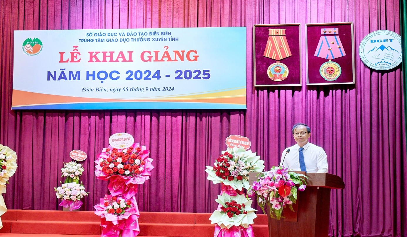 Tiếp nối chương trình thầy giáo Phạm Văn Cường –UVBCH Đảng Bộ Sở GDĐT, Bí thư chi bộ, Giám đốc Trung tâm đã đọc diễn văn khai giảng năm học mới. Trong đó, thầy ghi nhận những nỗ lực, cố gắng của thầy cô giáo và các em học viên đã đạt được trong năm học vừa qua. Chất lượng giáo dục toàn diện từng bước được nâng lên. Số học viên được loại học lực từ Trung bình trở lên đạt 97,46%. Số học viên được xếp loại hạnh kiểm Khá- Tốt đạt 94,4%. Tỷ lệ tốt nghiệp THPT năm 2024 của Trung tâm đạt 100%. Năm học 2024 - 2025, Trung tâm có 35 cán bộ quản lý, giáo viên, nhân viên và hơn 400 học viên. Bước sang năm học mới, thầy và trò Trung tâm quyết tâm thực hiện tốt mục tiêu, đạt nhiều kết quả cao, góp phần nâng cao chất lượng giáo dục toàn diện.