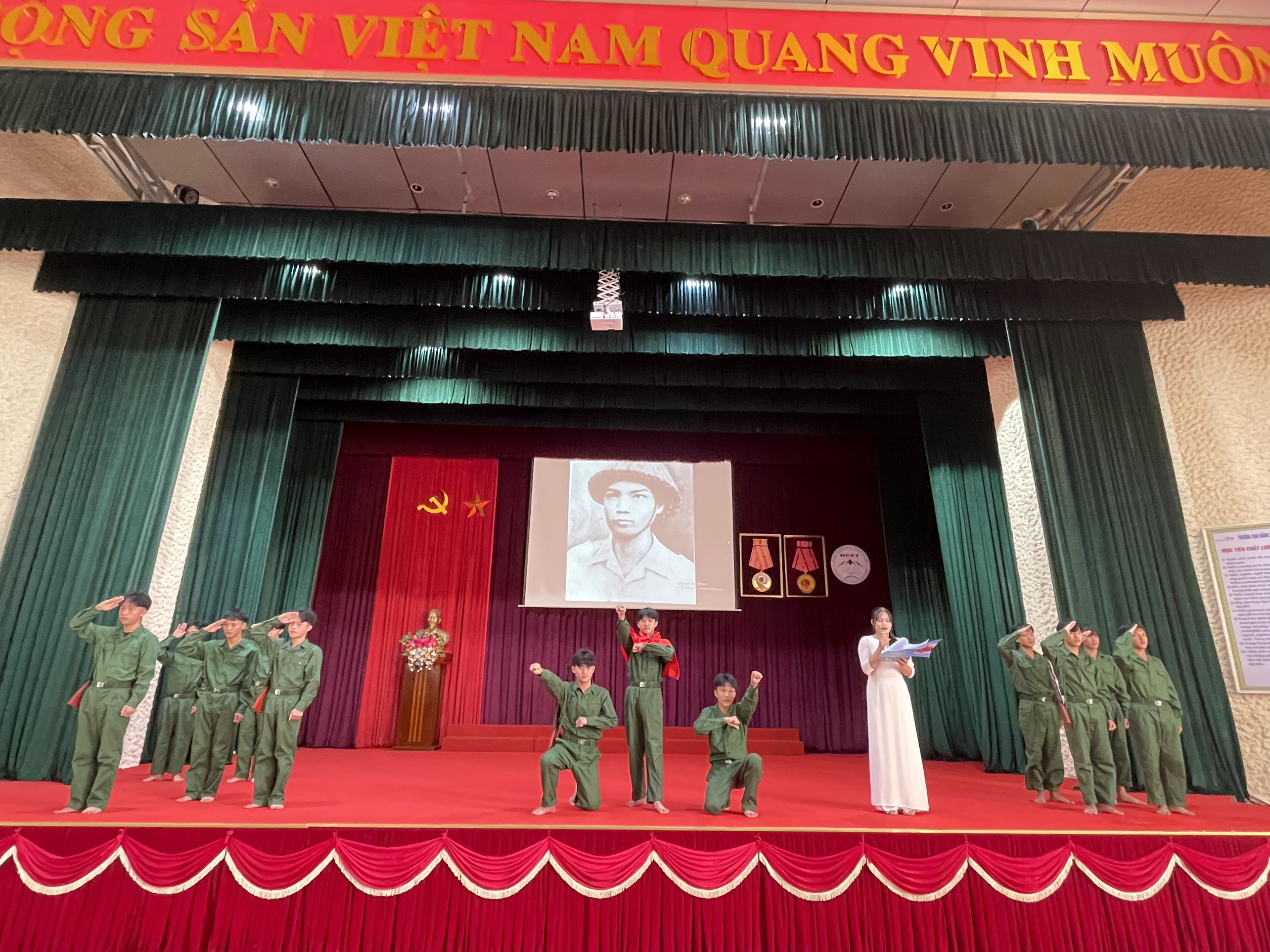 Mở đầu chương trình là các ca khúc cách mạng Qua miền Tây Bắc, Hò kéo pháo, Giải phóng Điện Biên với âm hưởng hào hùng. Phần chiếu phim tư liệu chiến thắng Điện Biên 1954 -56 ngày đêm đã đưa người xem cùng sống với những giây phút của lịch sử. Đặc biệt, phần kể chuyện của học viên Vũ Thị Lan Anh lớp 12C1 về anh hùng Bế Văn Đàn đã khiến cả hội trường lặng đi vì xúc động! … Chương trình được dàn dựng hết sức công phu và ý nghĩa không chỉ làm sống lại những phút giây lịch sử mà còn có ý nghĩa giáo dục thiết thực đối với các em học viên.