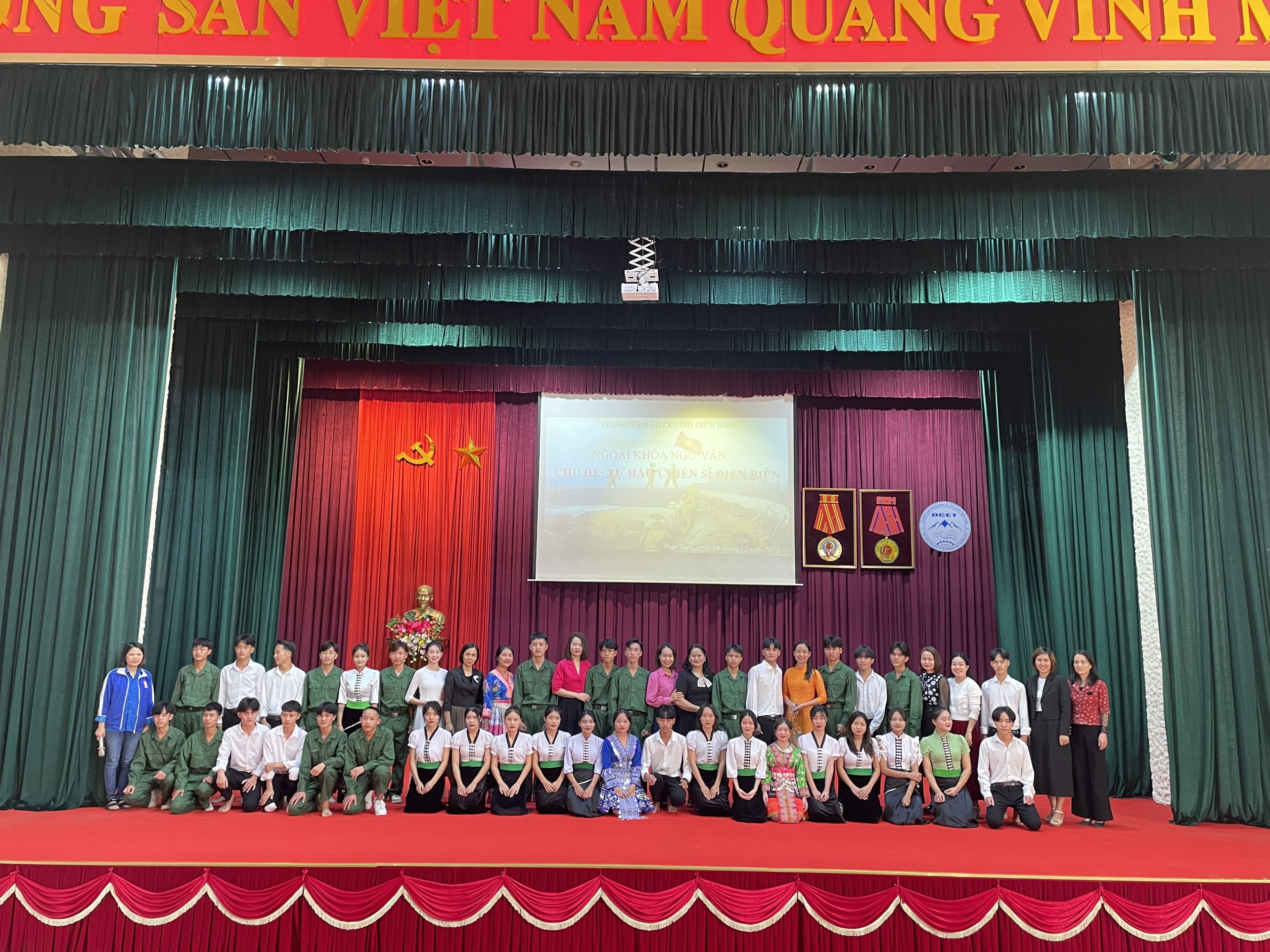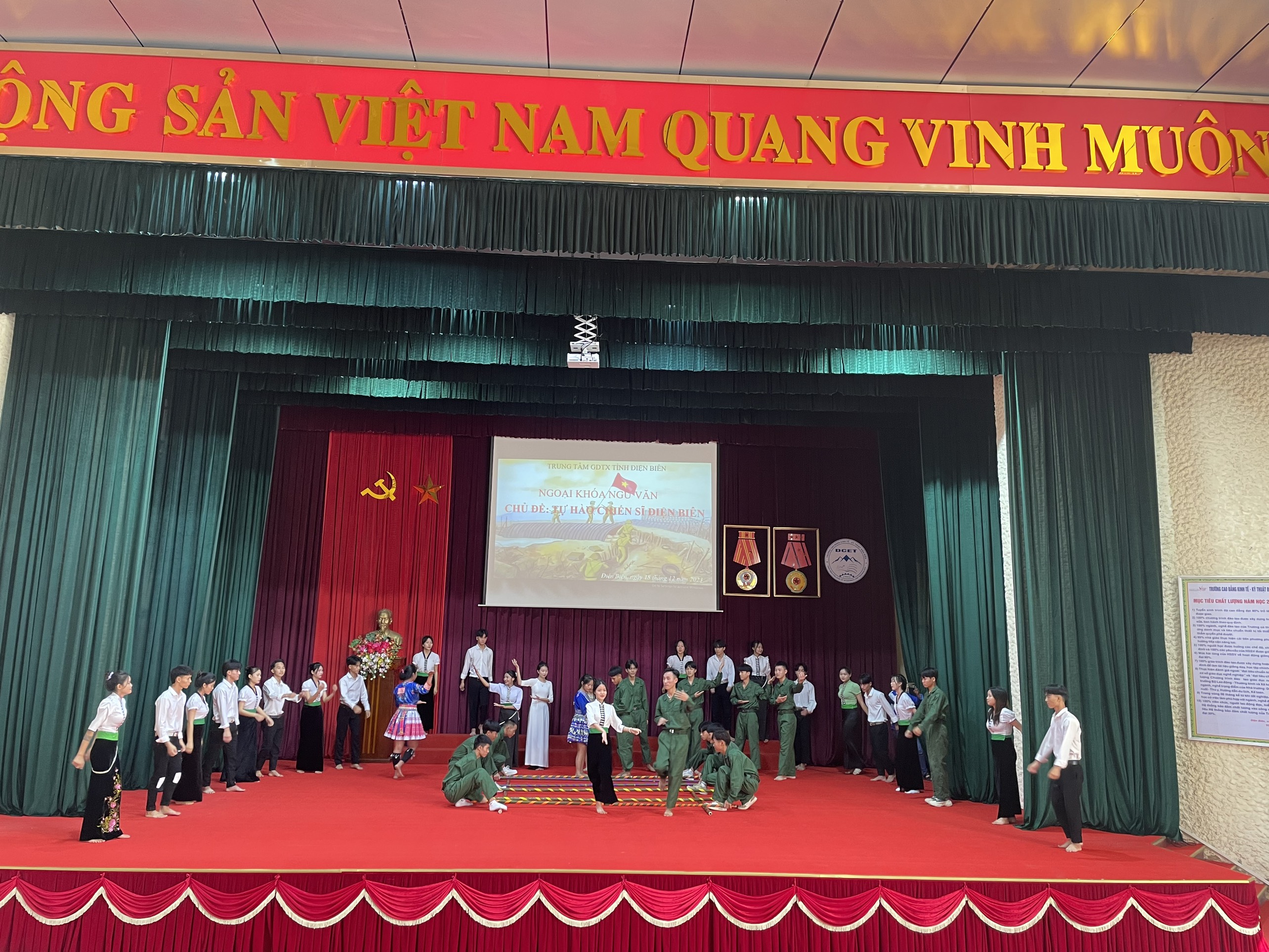 Hướng tới kỉ niệm 70 năm chiến thắng lịch sử Điện Biên Phủ, hoạt động ngoại khoá với chủ đề TỰ HÀO CHIẾN SĨ ĐIỆN BIÊN đã tạo sân chơi lành mạnh bổ ích để học viên thể hiện tài năng, phẩm chất. Là thế hệ sinh ra và lớn lên trên mảnh đất Điện Biên anh hùng trong thời bình, qua chương trình ngoại khóa, các em học viên sẽ biết ơn sâu sắc về sự hi sinh của các anh hùng, liệt sĩ. Đồng thời bồi dưỡng tình yêu quê hương đất nước, niềm tự hào dân tộc cho các em.