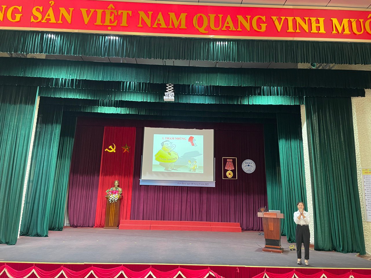Tiếp theo chương trình, trong nội dung tuyên truyền phòng chống tham nhũng, cô giáo Vũ Thị Nhàn đã cung cấp những thông tin thiết thực để giáo dục cho học viên những hiểu biết đầy đủ phòng chống tham nhũng trong xã hội hiện nay.