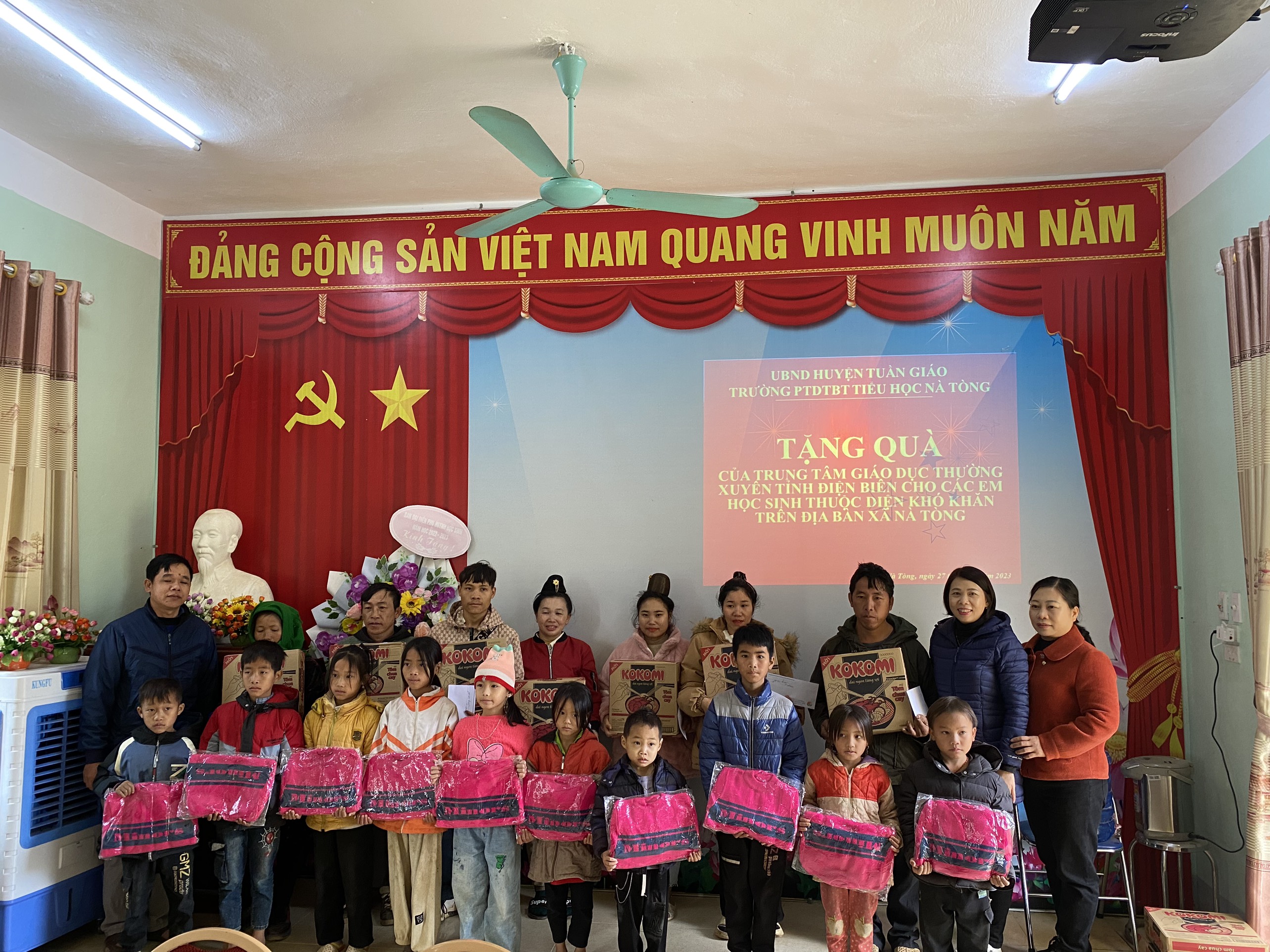 Nằm trong chương trình, kế hoạch giúp đỡ xã khó khăn theo Quyết định số 2072/QĐ-UBND ngày 17/11/2021 của UBND tỉnh về việc phân công nhiệm vụ cho các Sở, ban, ngành, đoàn thể tỉnh giúp đỡ các xã đặc biệt khó khăn trên địa bàn tỉnh Điện Biên giai đoạn 2021-2025, sáng ngày 27 tháng 12 năm 2023, đoàn cán bộ, giáo viên Trung tâm GDTX tỉnh đã đến thăm, trao tặng quà, áo ấm cho các học sinh có hoàn cảnh đặc biệt khó khăn xã Nà Tòng huyện Tuần Giáo.