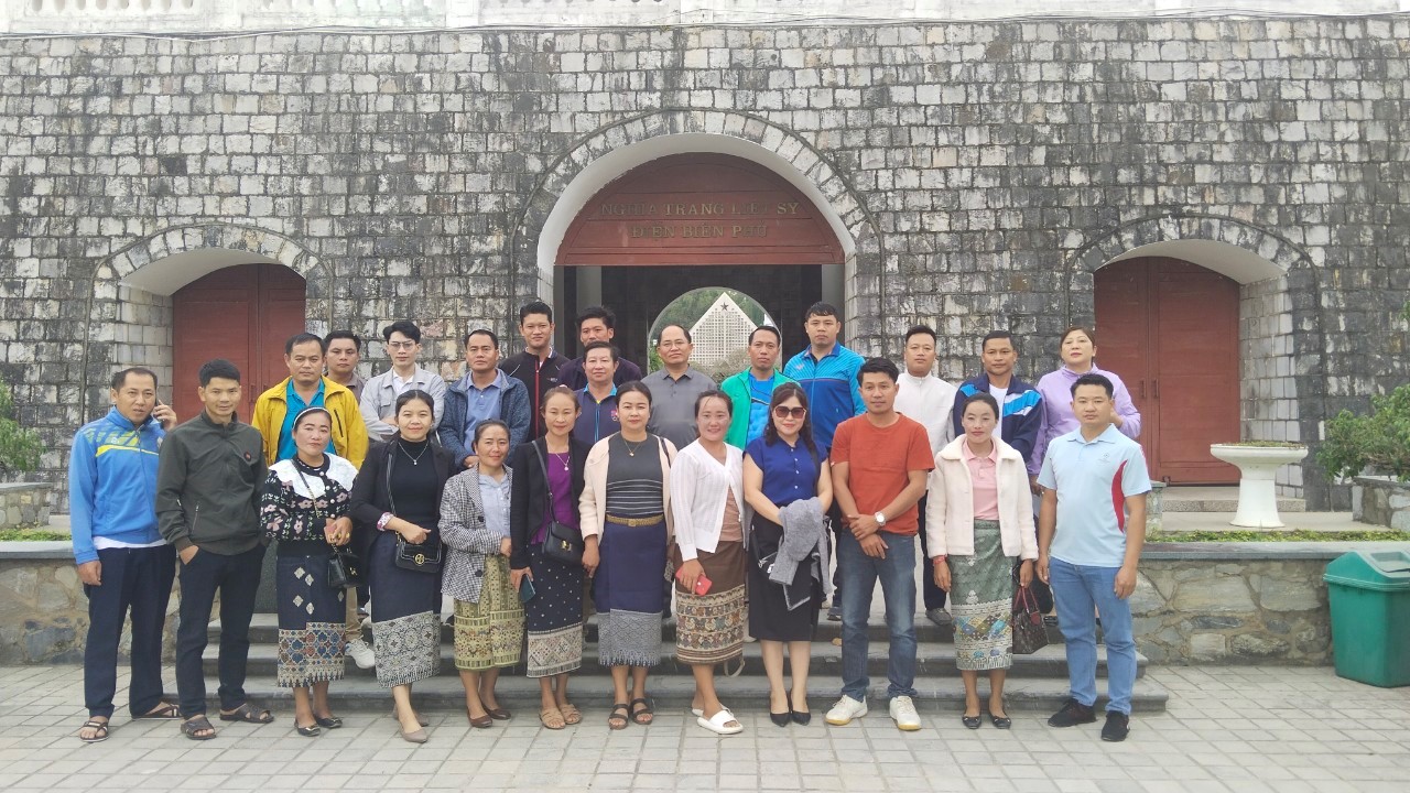 Điểm đến đầu tiên là Đền thờ liệt sỹ Chiến trường Điện Biên Phủ tọa lạc tại Đồi F, phường Mường Thanh, thành phố Điện Biên Phủ, nằm liền kề Di tích lịch sử Đồi A1, các học viên đã tổ chức lễ dâng hương tưởng niệm các anh hùng liệt sỹ đã hy sinh tại Chiến trường Điện Biên Phủ. Trong giờ phút thiêng liêng, các học viên đã thể hiện tấm lòng thành kính và bày tỏ lòng biết ơn vô hạn Chủ tịch Hồ Chí Minh vĩ đại; tưởng nhớ Đại tướng Võ Nguyên Giáp, cùng cán bộ, chiến sĩ, thanh niên xung phong, dân công hỏa tuyến; quân và dân cả nước đã anh dũng chiến đấu, hy sinh sương máu làm nên chiến thắng Điện Biên Phủ “Lừng lẫy năm châu, chấn động địa cầu”. Các học viên Lào cũng đã đến dâng vòng hoa, thắp nén hương thơm tri ân các anh hùng liệt sỹ đang yên nghỉ tại nghĩa trang A1, những người con ưu tú của dân tộc đã làm rạng danh non sông, đất nước để cho thế hệ hôm nay và mai sau tiếp bước truyền thống cha anh, xây dựng đất nước Việt Nam ngày càng giàu đẹp, phồn vinh, thịnh vượng.