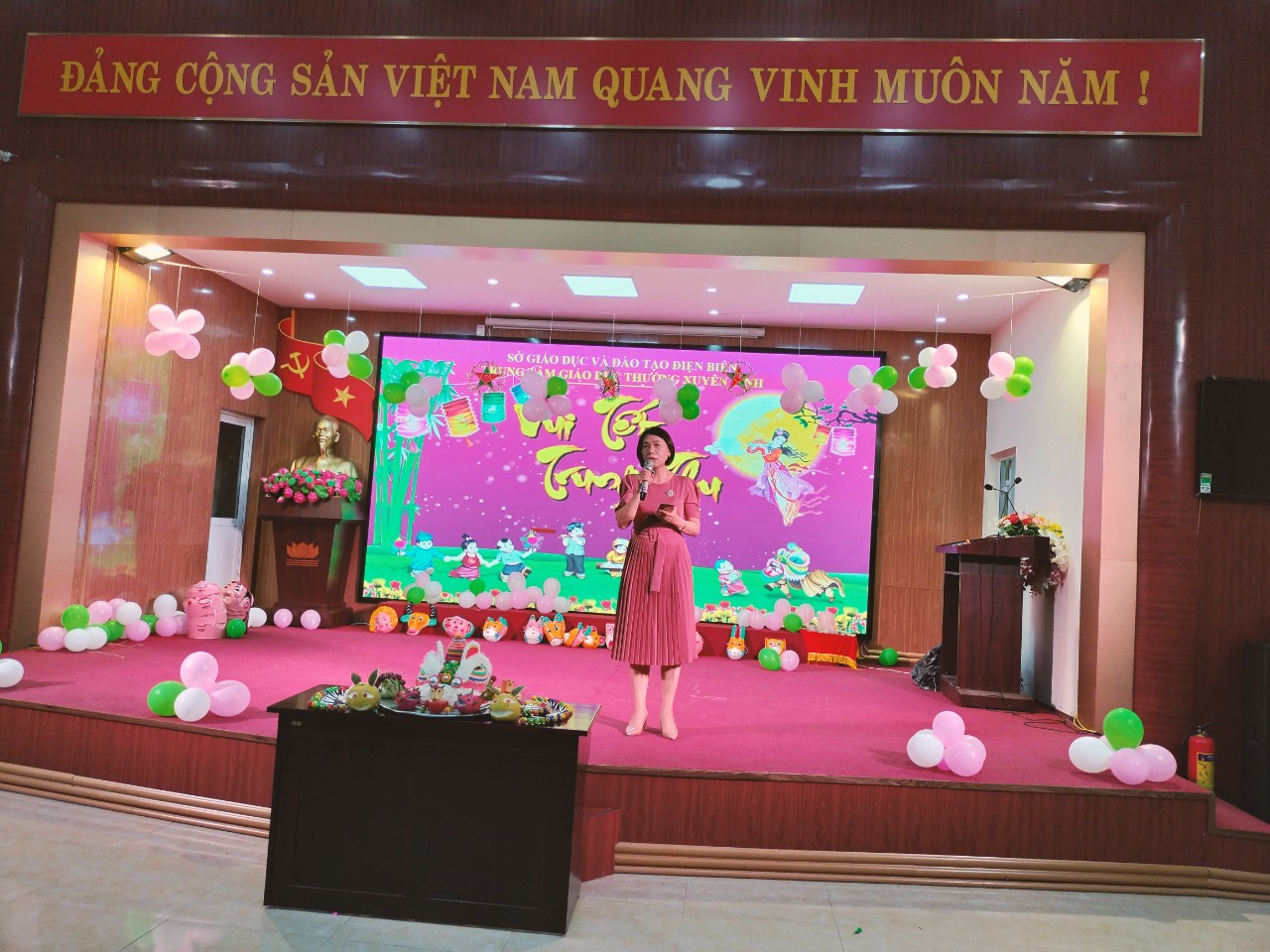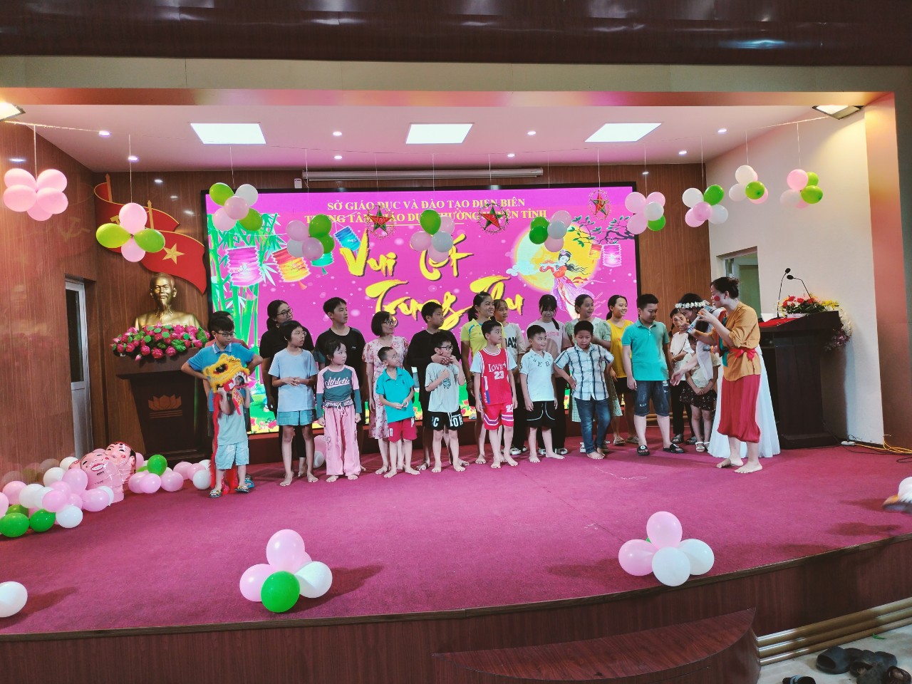 Hòa chung trong không khí cả nước vui đón Tết Trung thu cổ truyền của dân tộc, vào tối 26/9/2023, tại Trung tâm GDTX tỉnh, Chính quyền cùng Công đoàn Trung tâm đã tổ chức Chương trình “Vui Tết Trung thu” cho các cháu thiếu niên, nhi đồng là con, em cán bộ giáo viên, nhân viên, người lao động công tác tại Trung tâm GDTX tỉnh Điện Biên.