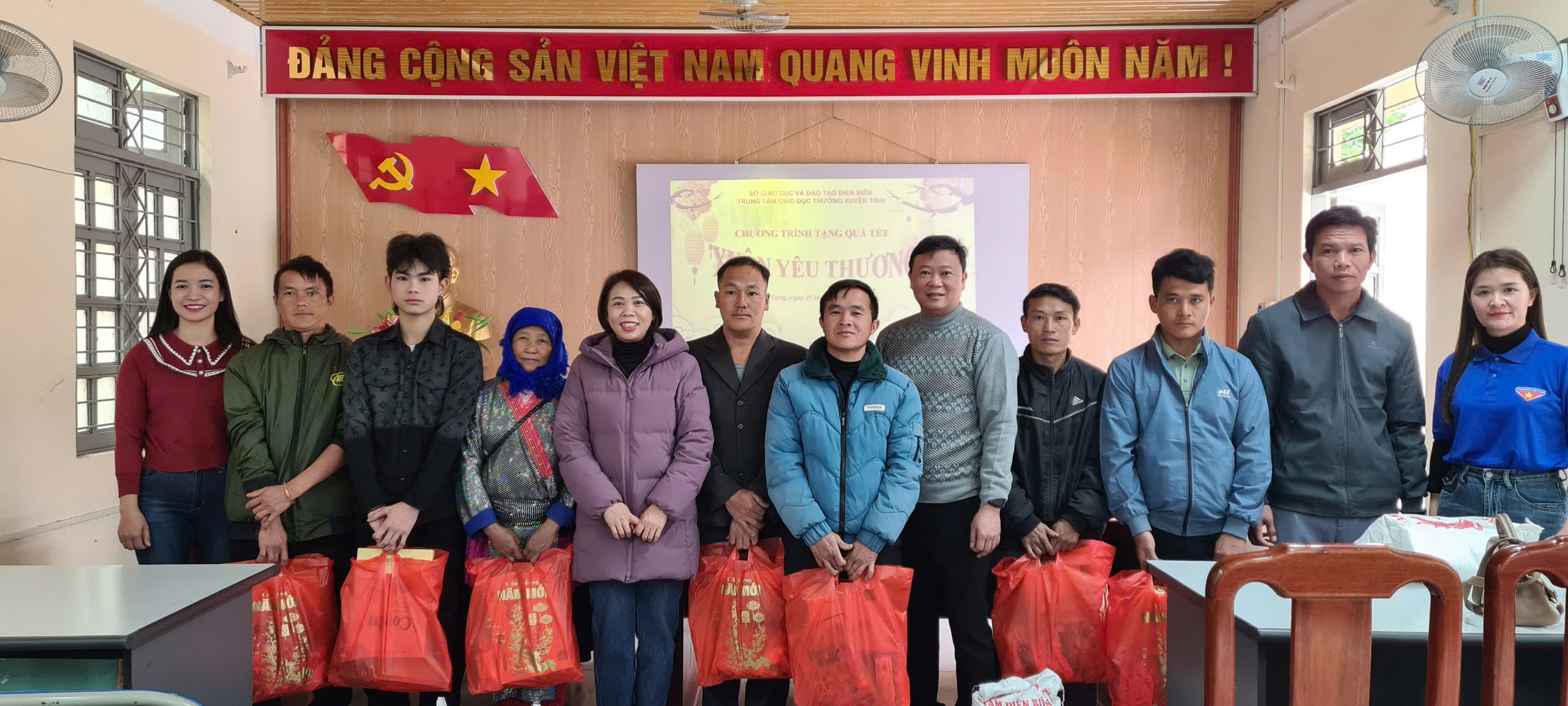 Nằm trong chương trình, kế hoạch giúp đỡ xã khó khăn theo Quyết định số 2072/QĐ-UBND ngày 17/11/2021 của Ủy ban Nhân dân tỉnh Điện Biên về việc phân công nhiệm vụ cho sở, ban, ngành, đoàn thể tỉnh, các đơn vị, doanh nghiệp giúp đỡ các xã đặc biệt khó khăn trên địa bàn tỉnh Điện Biên giai đoạn 2021-2025, sáng ngày 21 tháng 01 năm 2025, đoàn cán bộ, giáo viên Trung tâm GDTX tỉnh đã đến thăm, trao tặng quà cho người dân và học sinh có hoàn cảnh đặc biệt khó khăn xã Nà Tòng huyện Tuần Giáo.